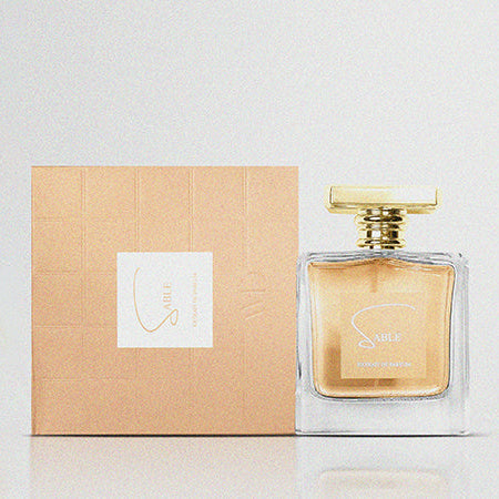 Sable by AMD Perfumes is a smoky citrus opening with incense and bergamot, softened by delicate lilac, creating a warm yet refined feel, presented in a clear structured glass bottle with a bold gold cap that reflects modern elegance. It evolves into a rich leather and fruity heart, settling into a creamy musky vanilla base, while the soft beige textured box adds a smooth, complete experience.